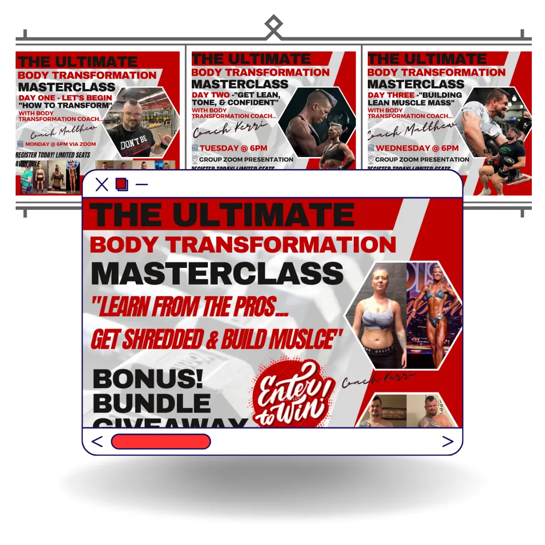 THIS 3-DAY MASTERCLASS RECORDING COVERS THE BASELINE REQUIREMENTS FOR A BODY TRANSFORMATION. DAY ONE: "HOW TO TRANSFORM", DAY TWO: "LEAN & TONE", DAY THREE: "BUILDING LEAN MUSCLE"